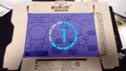ぬりえにあるマーカーの範囲内を認識し、3秒のカウントダウンが始まり読み込まれます。