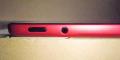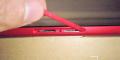 「右側面」を撮影した写真。USBコネクターと音量ボタン(左から2枚目)、microSDカードスロットとmicroSIMカードスロットがあります。カードスロットは保護カバーに覆われていますが、カバーは取り外すことができません(左から3枚目と4枚目)。