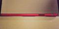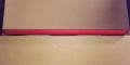 賞品機種のカラーはレッドでしたが、ワインレッドと表現すべき色合いでしょうか。アウトカメラ周辺は少しばかり隆起しています(左から2枚目)。また、<DELL>のロゴを基点にして円状の溝が彫られていますが、これは滑り止めの効果も狙っているのかもしれません。4枚目(一番右)の写真では、<intel inside>の薄いデザインを確認できます。