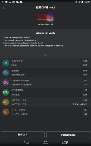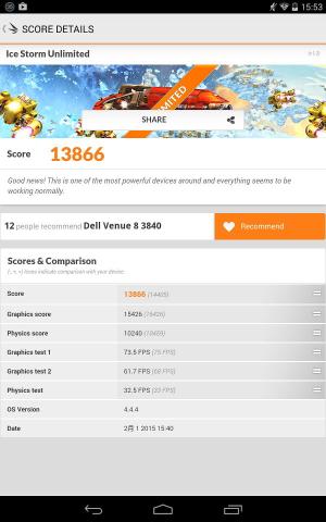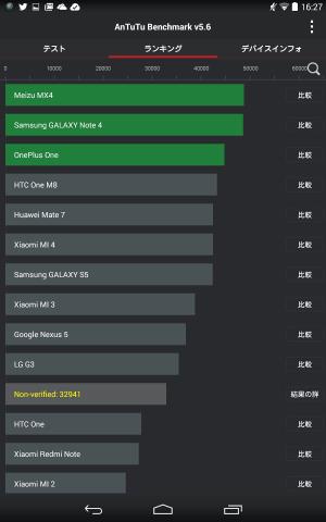 ランキングでは、スマホとの性能比較が表示されます。タブレットとしての性能は判断しづらいかもしれませんが、参考までに掲載しておきます(Non-verifiedがVenue 8になります)。
