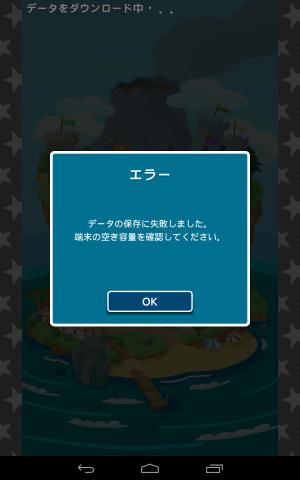 ニックネームの入力までは進めましたが、データのダウンロード段階で次のようなエラーが表示されます(メモリは200MB以上、ストレージも9GB程度を確保していました)。現在、運営会社さんに問い合わせています。