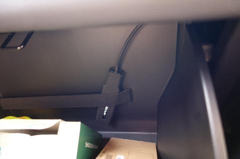 インターリンクの通信モジュールは、当初コンソールボックス部に出してあったが、邪魔なので、グローブボックス内に移動してもらった。