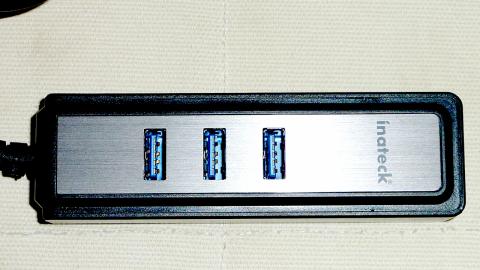 「3ポートUSB 3.0 OTGハブ with SDカードリーダー」と言う事で、本体にUSB3.0ポートが3つと、SDカードスロットが付いています。