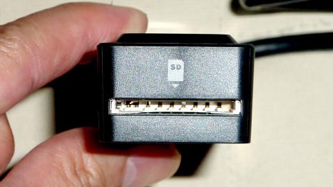 SDカードスロットはSDカードの全長が収まるタイプでは無く、先だけが刺さるタイプなので使用中はSDカード本体の半分以上が突き出ている形になるので取扱には注意が必要です。