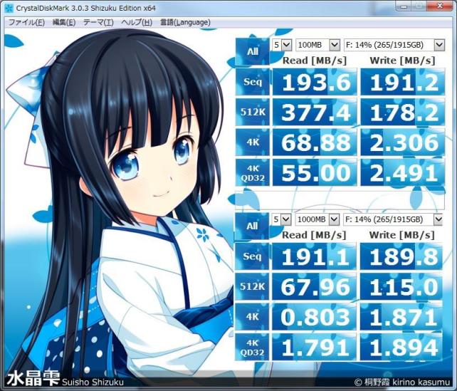 Test : 1000 MB [F: 13.8% (264.9/1915.5 GB)] (x5)