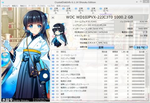 私が購入したHV620の内臓HDDはCrystal Disk Infoの情報では、ウエスタンデジタルの「WDC WD10JPVX」でした。
