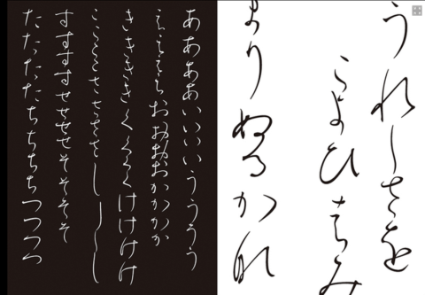 ひとつの仮名文字でも何種類も収録されていて、前後の文字のつながりに合わせて仮名文字がリアルタイムに変化していきます。