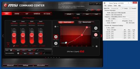 よって、「msi COMMAND CENTER」からCPUファンの回転数をマックスの回転数=1450rpmに固定した。