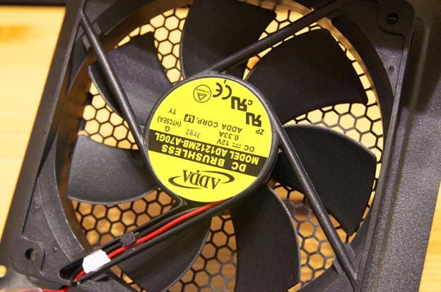 電源内部を冷却する12cmファンですが、ADDA製のAD1212MB-A70GLを搭載しています。