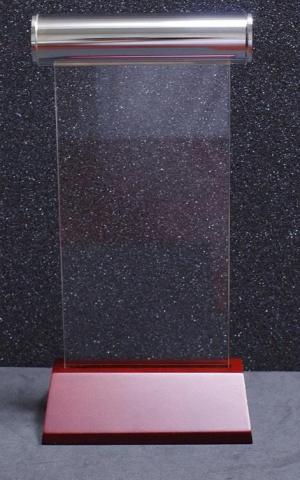 土台は天然ピーチ材で、スタンドが透明なアクリル板で、