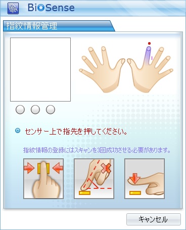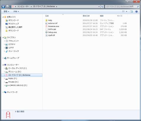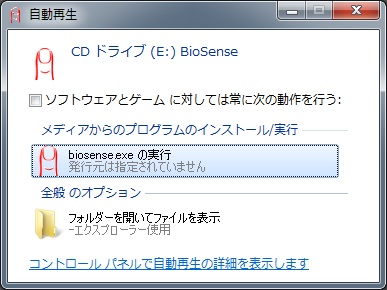 USBをさすと「BioSense」というソフトウェアを実行しろという画面がでてくるので実行。
