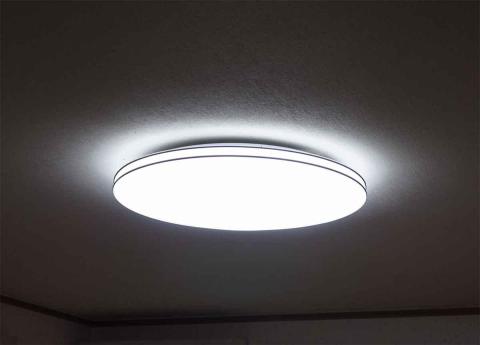 写真ではわかりにくいですが、LEDは32型の蛍光灯のように、サークル状に埋め込まれています。よって、真ん中にはLEDはないので、真ん中は暗いです。