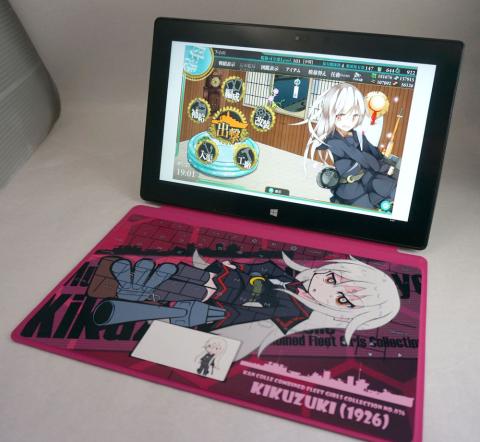 本体だけでも背面菊月仕様というなかなかウケる私の痛Surfaceだが、タッチカバーは「キーボードのはずなのに一面絵柄」という更なるインパクトがあるので目立つこと間違いなしだ。というかコミケでもウケましたハイ。菊月なキーボード。きくづきーぼーど。
