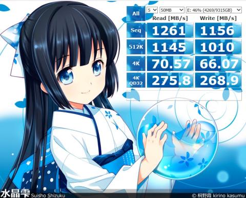 ただ、512kでの書込速度は大きく向上しており、やはり大容量キャッシュの搭載で細かいファイルの書込み時に効果が出ていると判る。