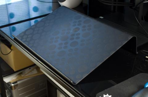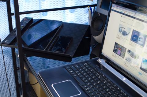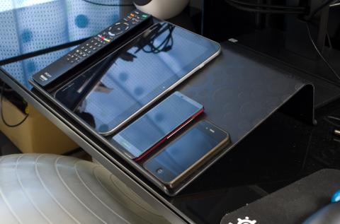 私は、デスクノートの横にセットし、タブレット等を置いています。
