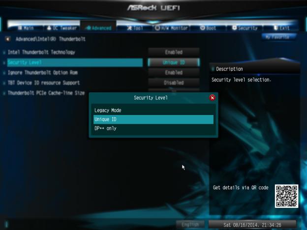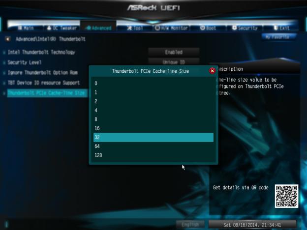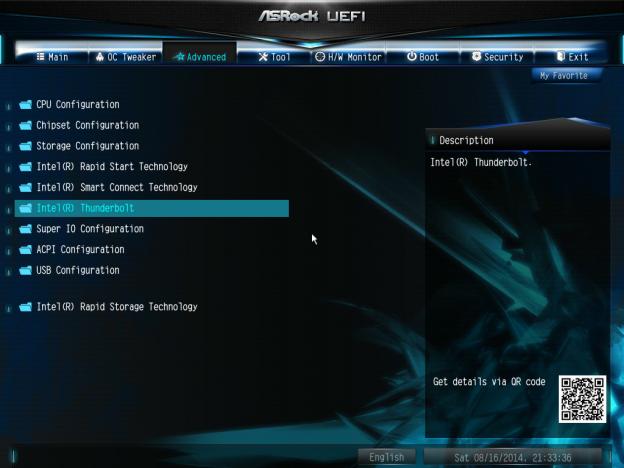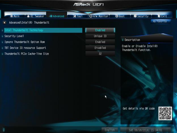 UEFIには、Intel(R) Thunderboltという設定項目名称になっていますが、ASRockからは、サンダーボルトのアドインカードは発売されていません。