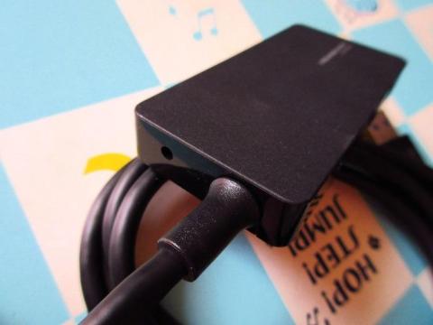 AC アダプター接続のためのコネクターは PC 接続のコネクターケーブルの横にあります。