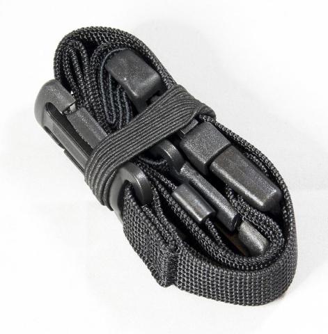 伸ばすと、両端にストラップへの固定具と片側にバックルが付いています。