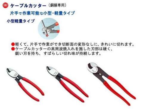 ケーブルカッターは線材を押しつぶさないように切るカッターで、電気屋さん御用達のハサミです、線の太さでカッターのハサミの種類がありますが、これは11.4Φまで切れるタイプです