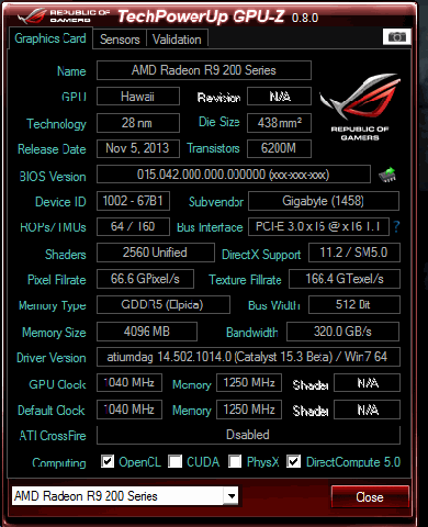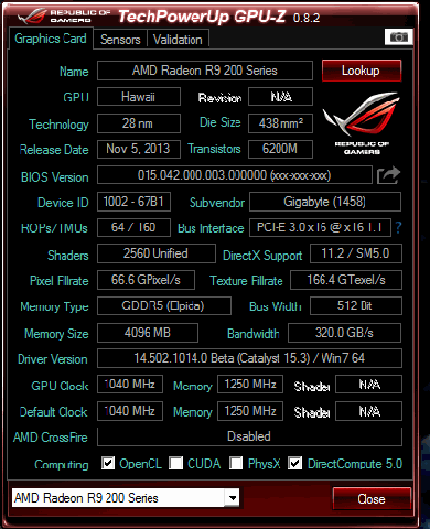 ギガバイトR9 290のGPU-Z (BIOS書き換え前)