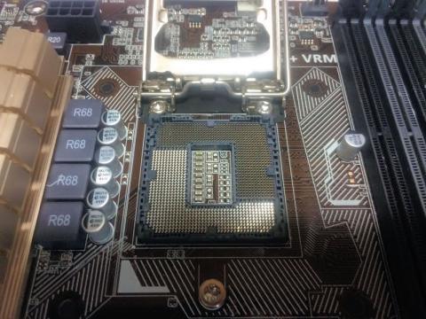 原因はCPUソケットがLGAになってからは極めてありがちな、ピンの多数曲がりです。まあ、この程度なら以前直したASRock Z68 Extreme4よりも少し多い程度ですから、何とかなるでしょう。