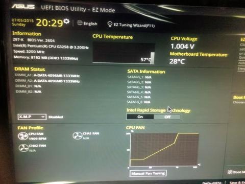 無事UEFIの起動を確認。ついでに内蔵しているEZ Flashを利用してBIOSのアップデートも行いました。もっとも、写真はアップデート後ですが、アップデート前でもPentium G3258をきちんと認識していました。