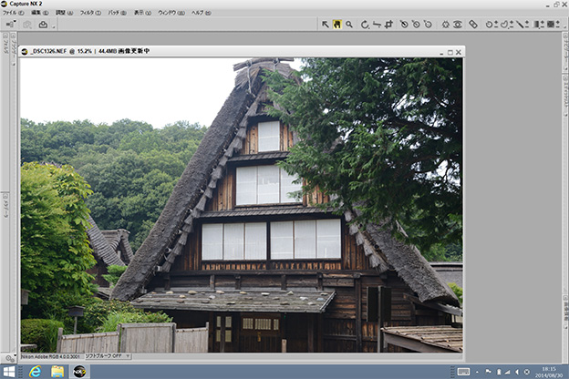 上の写真の軒下のメニューを100%にして、ブレやフォーカスを確認します。