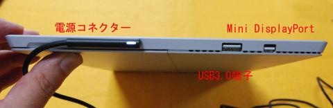 右は USB3.0、Mini DisplayPort、電源コネクター