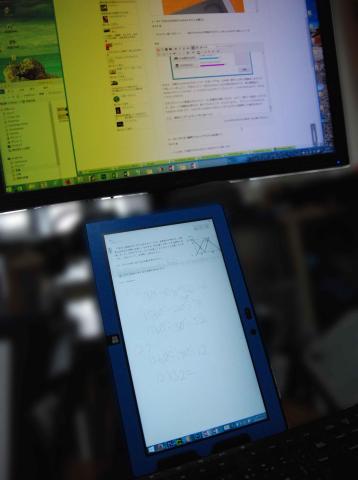 で、一計を考えました、自分のSurfaceをタブレット立てに置いておいて離れた場所(据え置きパソコンがある所)で表示を見て添削して見ようと・・・