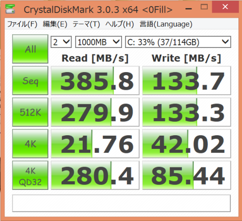 ▲Crystal Disk Mark 3.0.3 (0fill)
