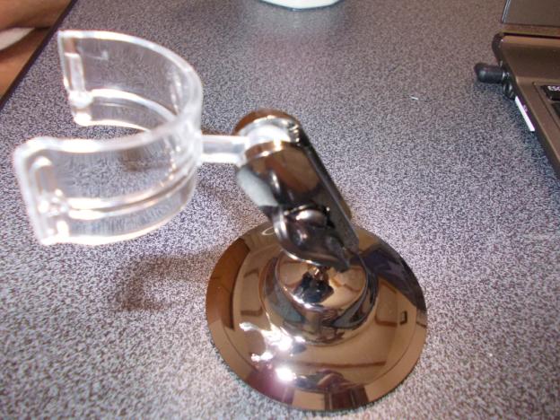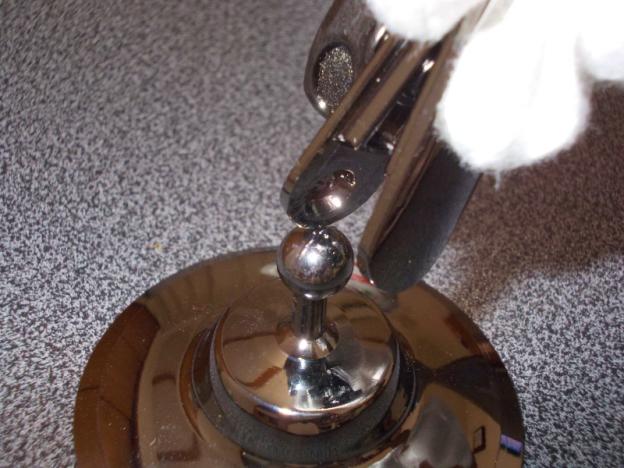メッキのアームで球体を挟む方式なので角度も自由自在に