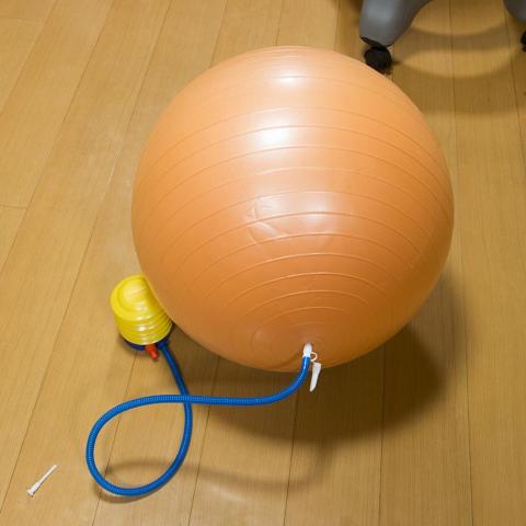 最初から分かっていた事ですが、バランスボールの空気は少しずつ抜けるため 2週間に 1回くらい空気の補充をしてあげる必要があります。