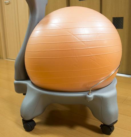 少し空気を抜けば良いのかもしれませんが、沈み込みが深いのもいやなのでどうしても気になるようならばもう少し小さいバランスボールに取り替えてみても良いかもしれませんね。