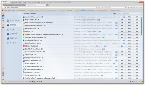 少しばかりアドオン(拡張機能)とペルソナテーマでデフォルトの状態からは変わっていますが,我が家のメインPCでは一番素に近い環境のプロフィールのお姿です。
