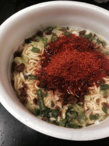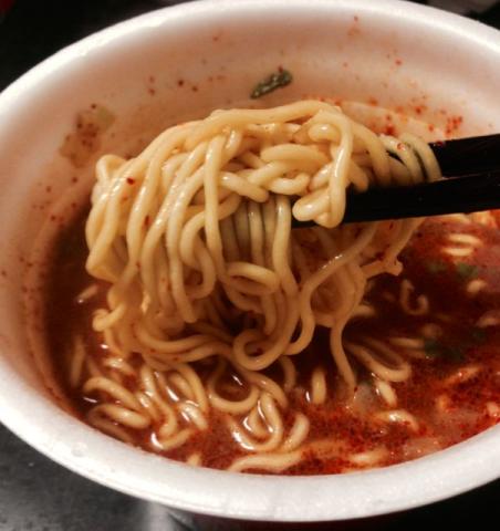 個人的には思っていた以上に辛くて、焼きそばと同量だと思うのですが、スープに溶け出してしまう為、かなり辛く感じました。私で辛いので、相当ですね。
