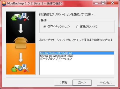 MozBackupはMozilla Firefoxや Mozilla Thunderbird等のプロファイルのバックアップと復元が簡単に出来るフリーソフトです。現在の最新版は1.5.2 beta1。