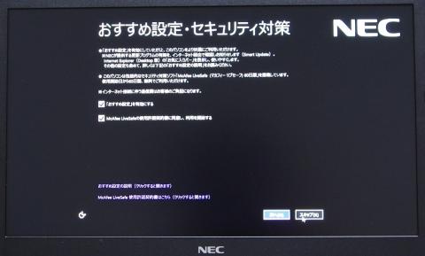 おすすめ設定・セキュリティ対策を聞いてくるんですが、