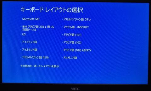 少し時間は必要ですが、キーボードレイアウト選択が出てきます。