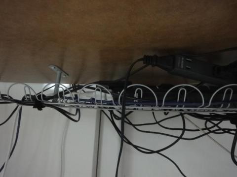 これは、机の下に設置したあと、あとは、雑多に電源タップごと、このオーガナイザーの上においてしまえばいいというものです。