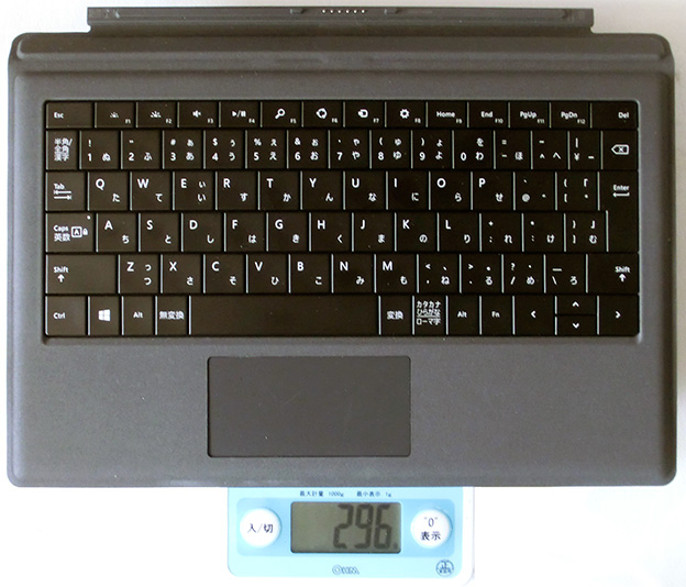 それに伴い、重量もType Cover 2の263gから296gへと、33g増えています。