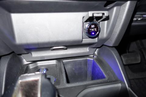 アクセサリーソケットに差し込むと、ブルーのLEDが点灯する。