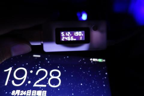 電流値は2A弱だが、iPadの電池残量が60%なので、電池残量が少ない状態からの充電であれば、もう少し高い値になると思われる。