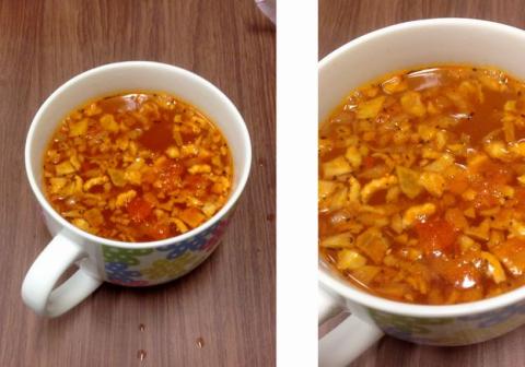 上手に「甘味」を使っており、とても飲みやすい「トマトスープ」でした。ただ、本物の「サルサ(料理)ファン」としては、正直、「やや物足りない」と思います。「甘味」が邪魔です。しかし、これを飲むのは「サルサファン」ばかりではないので、「良く出来た、日本のトマトスープ」と感じました。