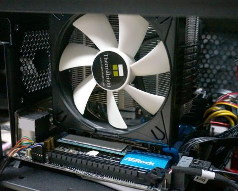 今回は無理やり低背タイプの12cmサイドフロー「TrueSpirit 120M BW Rev.A」を搭載したがファンを搭載可能位置まで落とすのにマザーとの干渉がシビアになる。