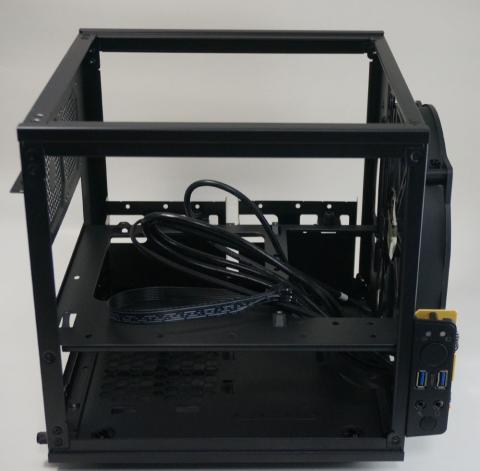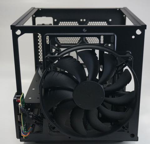 今回はマザーとクーラーの干渉のため横方向排気の変則配置(側面の12cmファンはメッシュ部にマグネットステーで固定)したが、その悪条件でもi7 5960X+R9 290という重量級構成をしっかり冷却できる。スカスカのケースだが結果としてファンの回転数が上がりにくいので低発熱構成にすれば静音方向に振ることも可能だ。