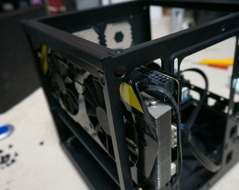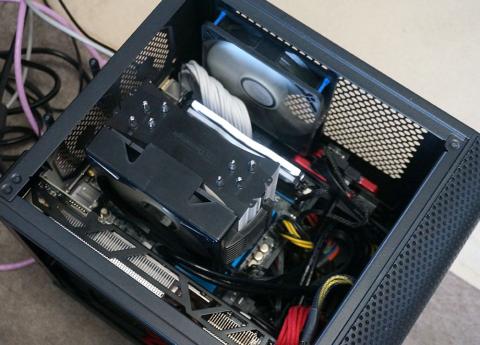 なのでトップフロータイプか9cmサイドフローが無難。それ以上の冷却力が必要なら大人しくフロントに簡易水冷ラジエータを持ってこよう。まあITXケースの場合リテールすらギリギリみたいなケースもあるのでそれに比べたら大幅に余裕がある。