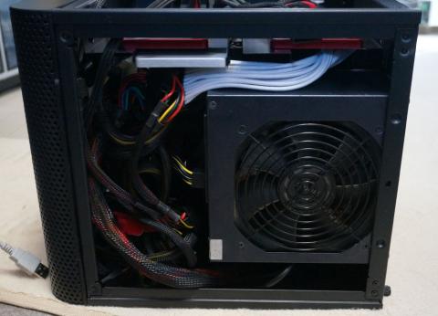 ケース下部ほぼすべてが電源ユニット用のスペースなので長尺のプラグイン電源でも余裕を持って取回せるし、逆にプラグインでない電源でも余ったケーブルを納めるスペースに余裕がある。