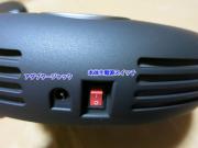 後方には、リモコンのセンサー受信部と、本体主電源スイッチ、アダプタージャックがあります。