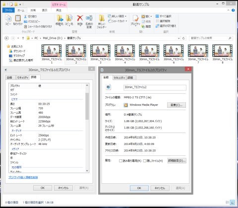 サンプル動画は、MPEG-2 TSファイル1.86GBを8つコピーし