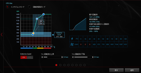 取り付けられたファンを自動でテストして、最大回転数と最低回転数を把握し、温度に応じた最適な回転数を設定してくれます。